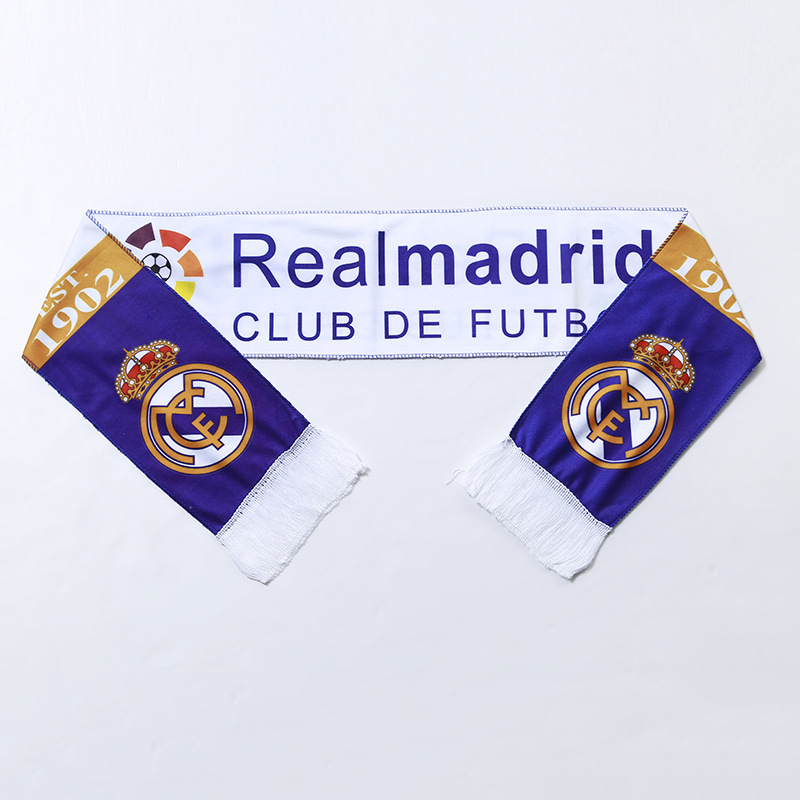 I produttori diretti di qualità del poliestere di inverno di calcio personalizzata sciarpa di stampa jacquard sciarpa di lavoro a maglia del modello